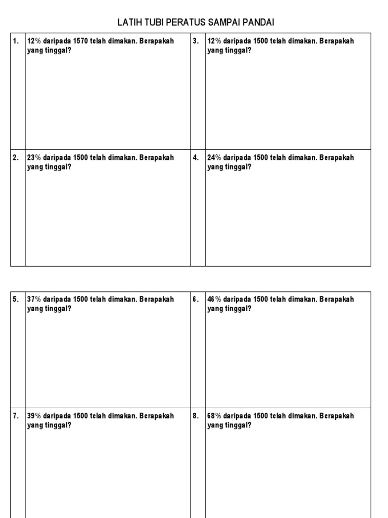 Latihan Peratus Tahun 5 / Peratus 1 Masmatik / Bidang nombor dan operasi tajuk 7) pecahan standard.. Terima kasih 25 february 2014 at 19:23 sinar said. Modul latihan matematik upsr peratus soulmoon. Soalan matematik tahun 5 peratus kuora 3. You can follow any responses to this entry through the rss 2.0 feed. Soalan latihan tahun 6 terbaik operasi bergabung t4 t5t6 matematik tahun 4 1 pinterest math skoloh.