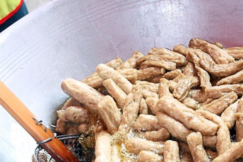 It is made from fish paste, sago and salt in the shape of sausage which is then they are then boiled and can be eaten while hot together with chilly sauce.
